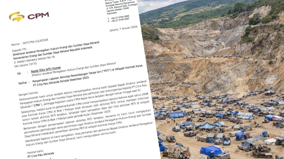 Laporan tersebut disampaikan melalui surat bernomor 007/CPM-LGL/I/2026 tertanggal 7 Januari 2026 yang ditujukan kepada Direktur Jenderal Penegakan Hukum ESDM, Rilke Jeffri Huwae. Dalam surat itu, manajemen CPM menyebutkan bahwa praktik penambangan rakyat di dalam wilayah konsesi telah berlangsung sejak 2008 dan hingga kini belum sepenuhnya terhenti.