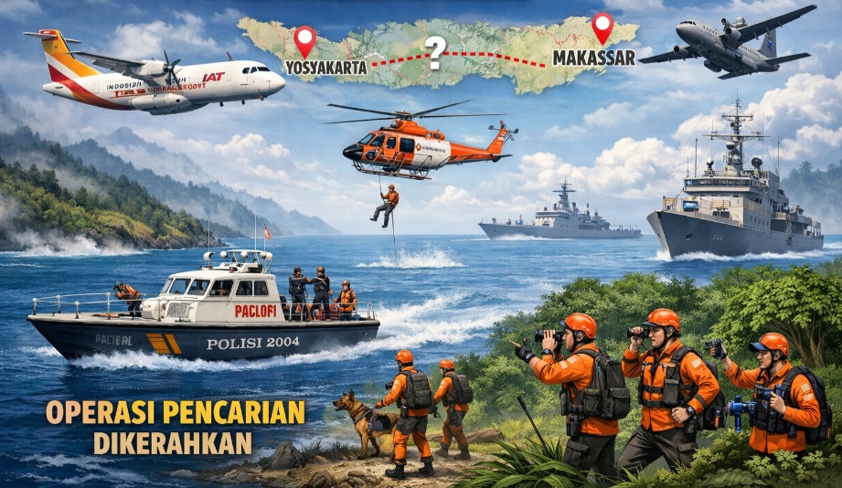 MAKASSAR,- Pesawat jenis ATR milik maskapai Indonesia Air Transport dilaporkan hilang kontak saat menjalani penerbangan dari Bandara Adisutjipto Yogyakarta menuju Bandara Sultan Hasanuddin Makassar, Sabtu (17/1/2026). Hingga Sabtu siang, keberadaan pesawat tersebut belum diketahui.