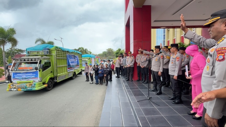 PALU,- Sebagai wujud solidaritas nasional, Polda Sulawesi Tengah mengirimkan bantuan besar untuk korban banjir dan tanah longsor yang melanda sejumlah wilayah di Pulau Sumatera. Kapolda Sulteng Irjen Pol Endi Sutendi memimpin langsung pelepasan bantuan kemanusiaan tersebut di halaman lobi Mapolda Sulteng, Kamis (4/12/2025).