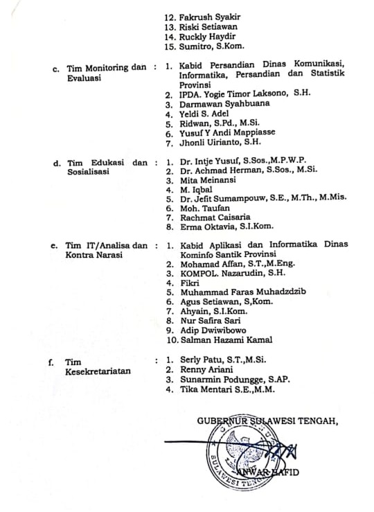 Adapun nama pengurus Satuan Tugas Berani Sapu Bersih Hoaks (BSH) terlampir dibawah ini :